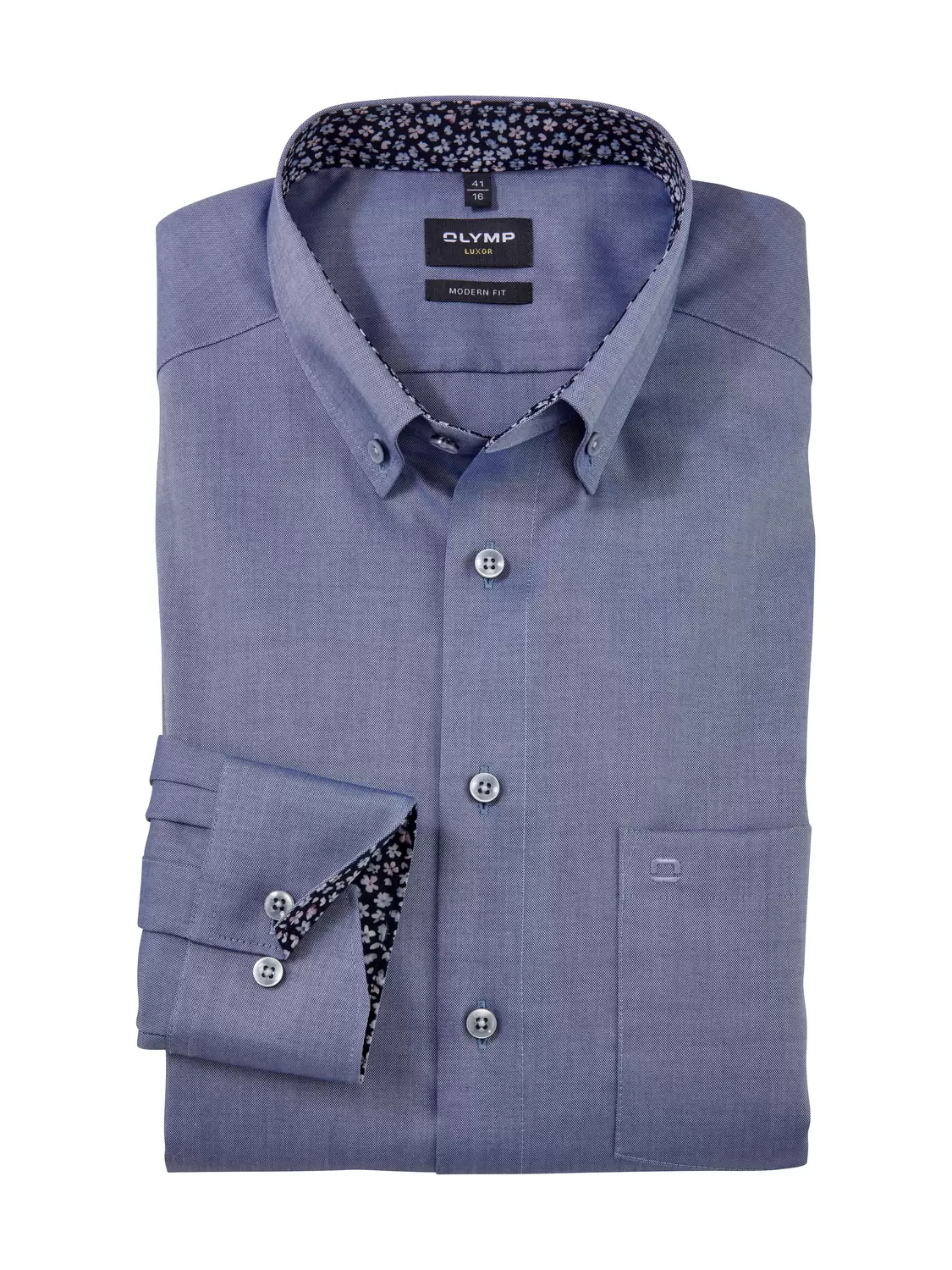 Intensive Uni-Farbwirkung in OLYMP Celebration-Tönen. Das OLYMP Luxor modern fit bringt frühlingshafte Inspiration ins Business. Die gewebte Textur aus feinen Baumwollgarnen ist atmungsaktiv, hautsympathisch sowie besonders zeitsparend pflegeleicht und bügelfrei. Sportiver Schnitt, cooler Akzent mit kontrastivem Besatz im Button-down-Kragen.
