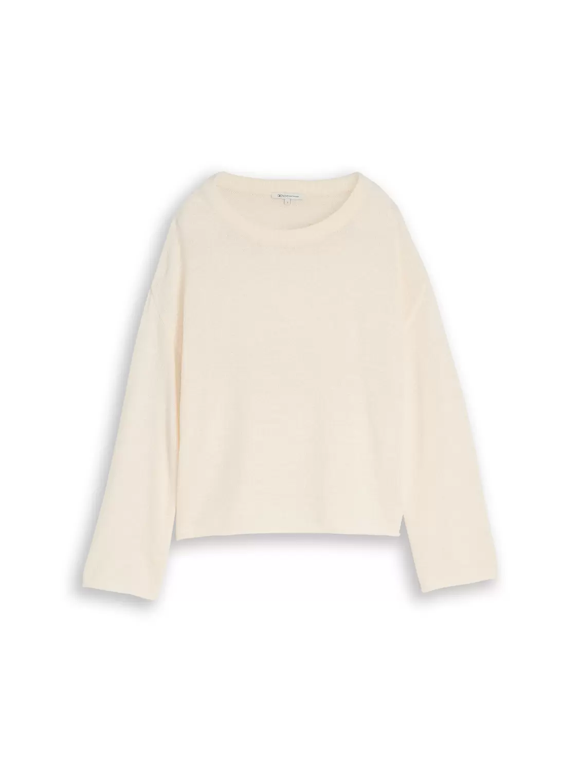 Locker geschnittener Pullover mit U-Boot-Ausschnitt, überschnittener Schulternaht und gerollten Saumkanten