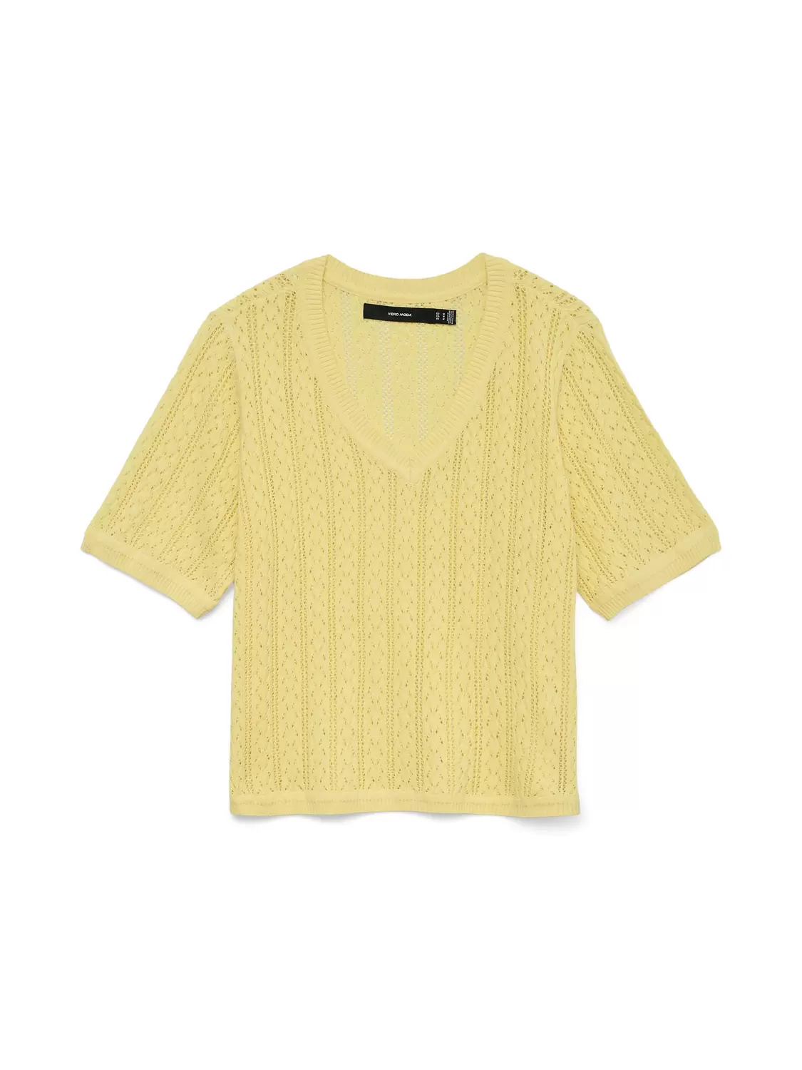 Im Zweifelsfall ein T-Shirt tragen! Mit einem T-Shirt können Sie nie etwas falsch machen - eine perfekte Wahl für einen coolen und zeitlosen Look. Tragen Sie dieses T-Shirt zu einer schönen Boyfriend-Jeans und fügen Sie ein Paar klobige Sneaker für einen urbanen City-Look hinzu. - Produkttyp : Gestricktes T-Shirt - Hals : V-Ausschnitt - Ärmel : Halbarm - Manschetten : Gerippte Ärmelbündchen - Passform : Normal geschnitten