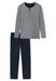 Im sportlichen Look und 100% weicher Baumwolle punktet dieser lange Schlafanzug bei anspruchsvollen Herren. Ein Serafino-Kragen mit Knopfleiste schenkt dem Oberteil mit grau-weißen Fineliner-Ringeln ein dezentes Detail, das in der langen grauen Hose ein stimmiges Pendant erhält. Lockerleichter Single Jersey übernimmt den komfortablen Part und macht den Zweiteiler besonders bequem. Genau das Richtige für Herren, die entspannte Nächte am liebsten in bester SCHIESSER-Qualität genießen!